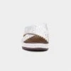 From Comfy Steps, the exotic Cancun sandal. The Cancun sandals features a beige and gold upper with diamante detailing. A toe-post upper allows the feet to move and breathe, a soft insole ensures comfort and support, and a wedged outsole gives height and a stable grip to this mule.