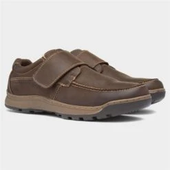 Designed by Hush Puppies, these Casper men’s shoes showcase a brown leather upper along with fine stitch and subtle branding details for that finishing touch. Additionally, they feature a simple easy fasten strap to ensure both quick and easy fitting is provided for all. For added comfort and support, these shoes also offer a thick grip sole. Perfect for everyday wear this season paired with jeans, trousers, t-shirts and much more!