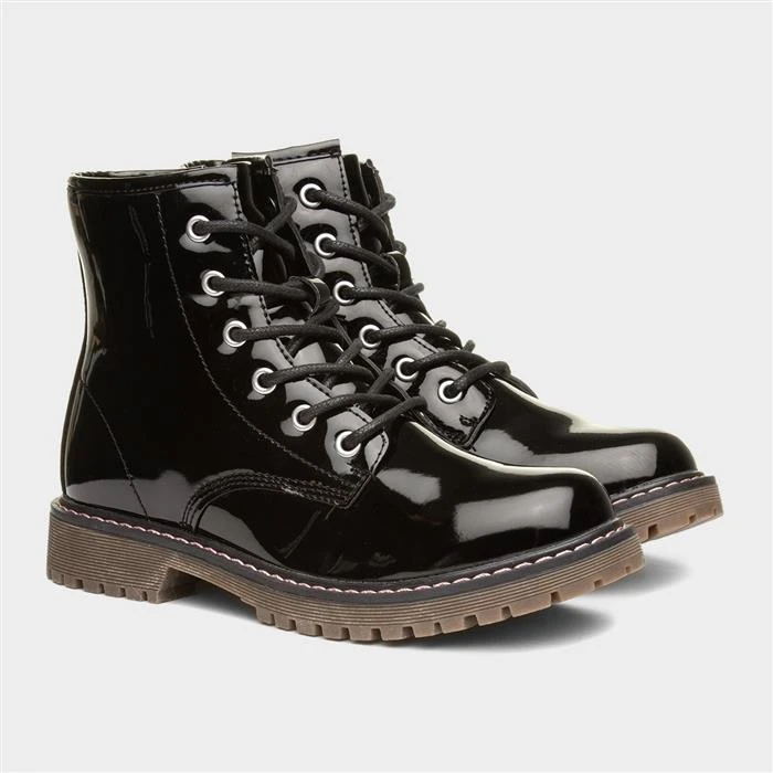By Lilley, these girls’ ankle boots showcase a black patent upper along with fine stitch detailing for that finishing touch. Additionally, they provide both a lace up front and a simple zip up fastening to ensure quick and easy fitting for your little ones. These boots feature a thick grip sole which offers added support and comfort beneath their feet, making these perfect for everyday wear during the Autumn / Winter months.