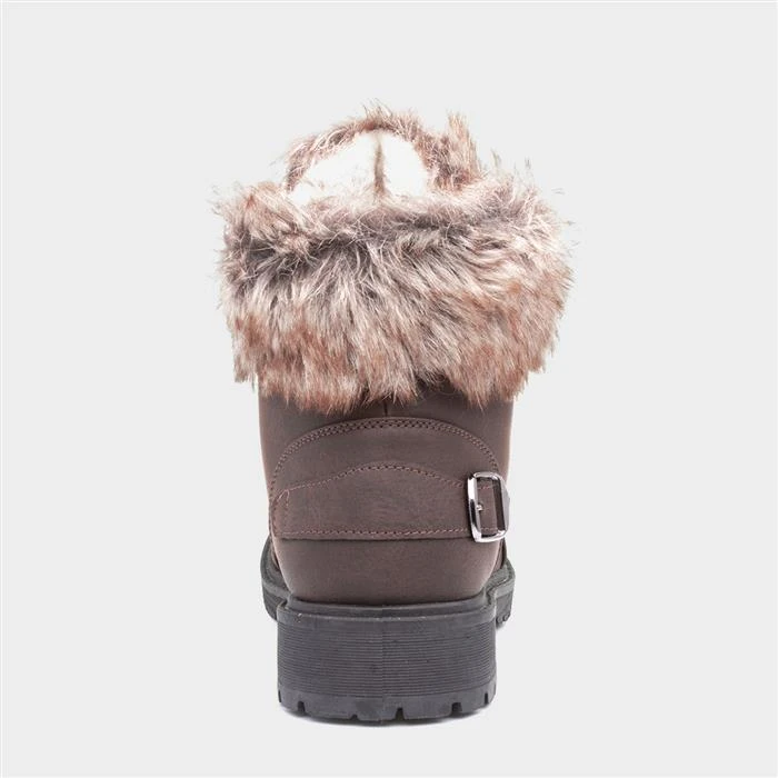 From Lilley, these boots are perfect to pair with jeans, dresses and skirts when the cooler seasons come. Additionally, these boots embrace a chocolate brown colour with a faux fur trim to help keep your ankles snug and warm. The lace up fastening will secure your feet inside providing full support and the buckle detail on the side adding a creative design feature. The round toe and chunky sole adds to the comfort factor.
