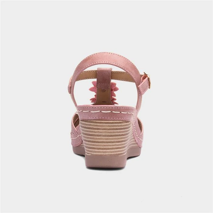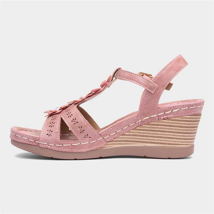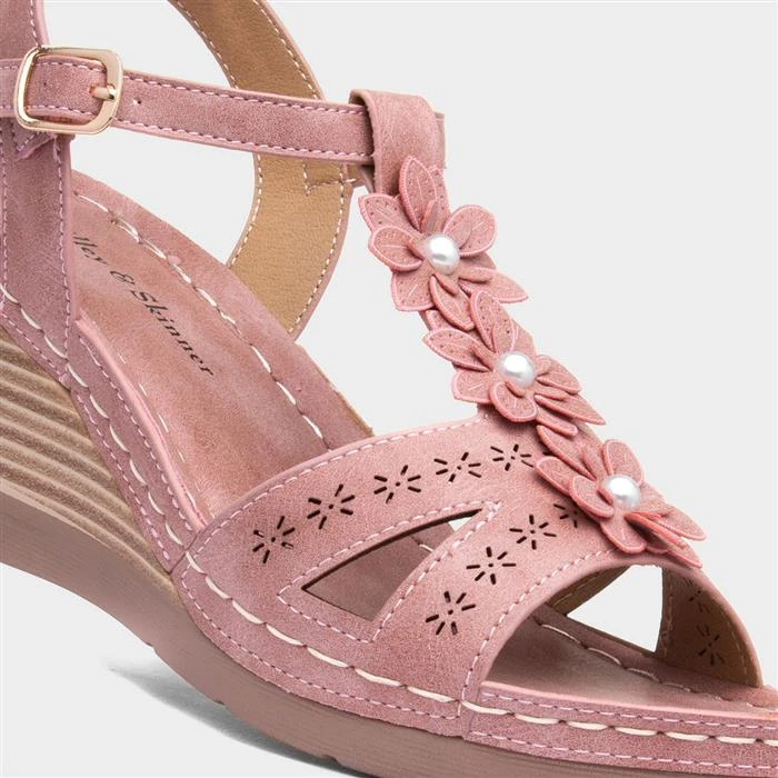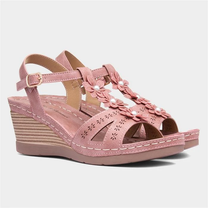 The Barbados women’s sandal from Lilley & Skinner features a rose pink upper with a laser cut floral design, and flower detailing. Their buckle strap allows an easy, customised fit, while their padded insole ensures comfort and support. A wedged heel adds height, and a gripped outsole ensures stability. Additionally, these sandals come in black, beige, and navy.