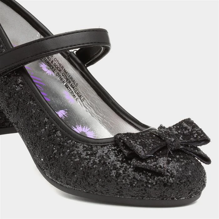 By Lilley Sparkle, these girls’ shoes showcase a black glitter upper along with fine stitch and bow front details. Additionally, they feature a simple easy fasten strap to ensure both quick and easy fitting for your little ones. Perfect for party season, these shoes provide a comfortable heel. Pair with dresses, skirts and more this season!