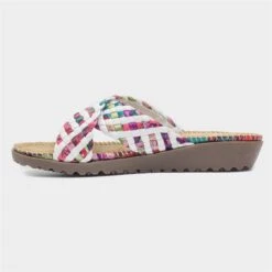 By Lilley, these women’s sandals feature a white and silk scarf-style plaited upper. They’re easy to slip on, comfortable with their padded insole, and breathable too. A low wedged heel adds height, while a jagged outsole ensures stability.