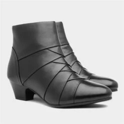 Designed by Lotus, the Tara women’s boots in black leather feature a pleated, cross-over design with a zip up fastening for a quick and easy fit. Their low heel adds height, while their gripped outsole ensures stability. These boots are perfect for a formal look, inside or outside of work.