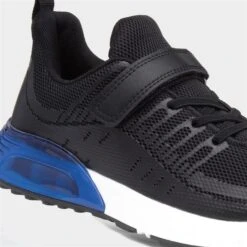 From Osaga, these kids’ Planet trainers feature a black mesh upper with black trim detailing. Their easy fasten strap and elasticated laces ensure a quick and easy fit, while their padded insole ensures comfort and support. Their air-bubbled outsole provides additional support beneath their feet, and their outsole is gripped for stability. Perfect for sports, P.E., and everyday wear.