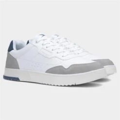 The Sterling men’s Osaga trainer is a casual trainer that is essential for your weekend wardrobe. It features a soft white upper with grey and blue panels, punched detailing, a lace-up fastening for a secure fit, and a comfortable insole. Their white and navy outsole adds a stable grip to this cool, casual trainer.