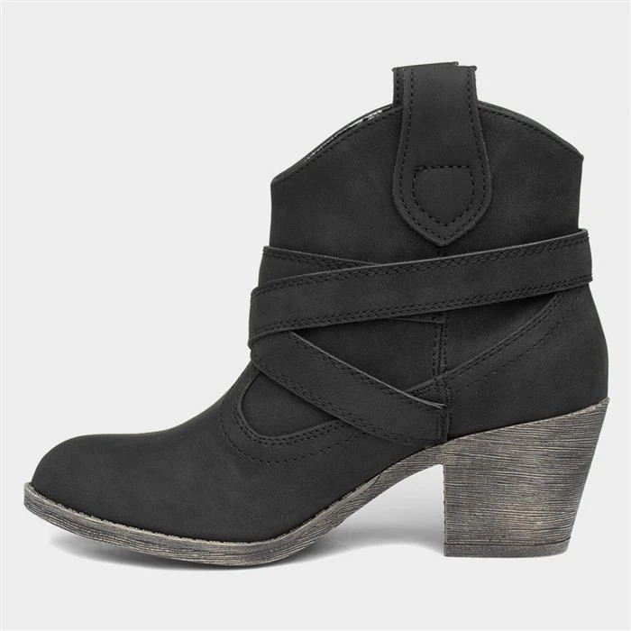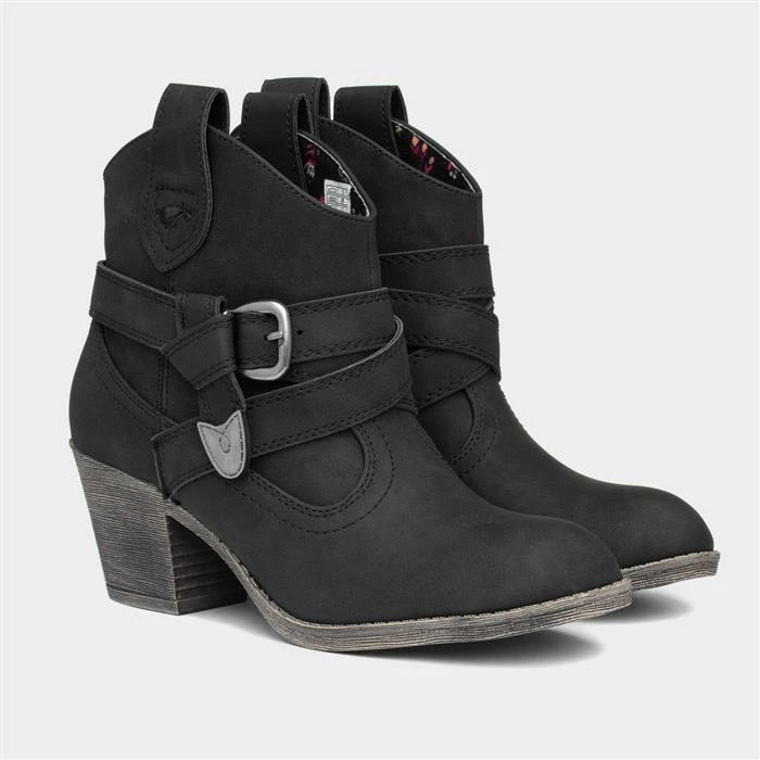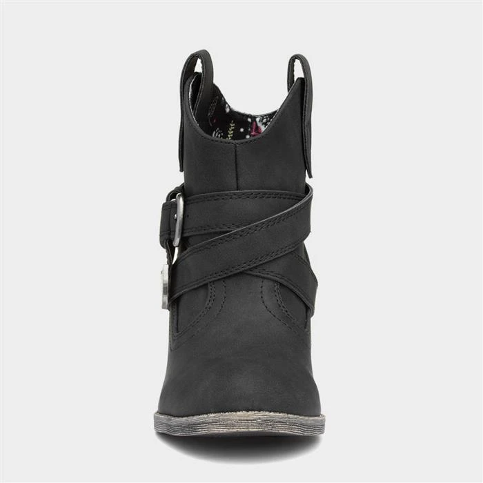 Stay on trend with these Satire women’s cowboy boots from Rocket Dog. They feature a black upper with decorative buckle detailing and two pull tabs for quick and easy fitting. Their heel offers height while their soft lining ensures comfort. Pair these with a skirt, dress, or a pair of jeans!