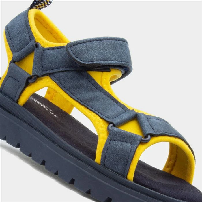 From SJ, the Leo kids’ sandal in navy and yellow. It features an navy upper with a yellow trim, an easy fasten strap for a secure fit, soft lining and a Soft Touch Foam insole for ultimate comfort, and a chunky cleated outsole for stability, and durability too. They’re also flexible and lightweight.