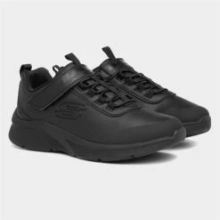 From Skechers, these kids’ Microspec Classroom Cutie trainers feature a black upper, an easy-fasten strap for a secure fit, and elasticated laces. Their padded insole offers extra comfort, while their gripped outsole provides stability. Perfect for P.E and sports.