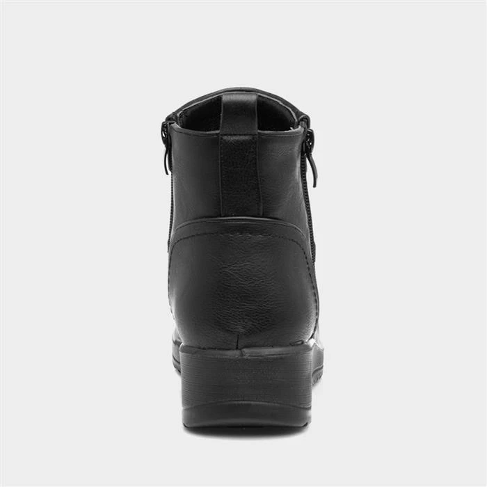 From Softlites, these women’s ankle boots embrace a black upper on a low wedge outsole. They feature double zip fastening for quick and easy fitting, while their padded insole and lightweight and flexible outsole provides comfort for your feet. Why not style with your favourite jeans and cosy knit through those colder months.