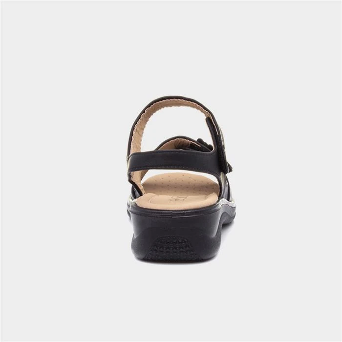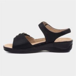 Walk in comfort in a pair of these women’s black easy fasten comfort sandals from Softlites. They feature an open toe, 3D flower detailing, and easy fastening strap, breathable insole and a wearable low wedge heel which makes them a comfort wear. These sandals are also wider fitting, meaning they help to provide comfort for broader feet.
