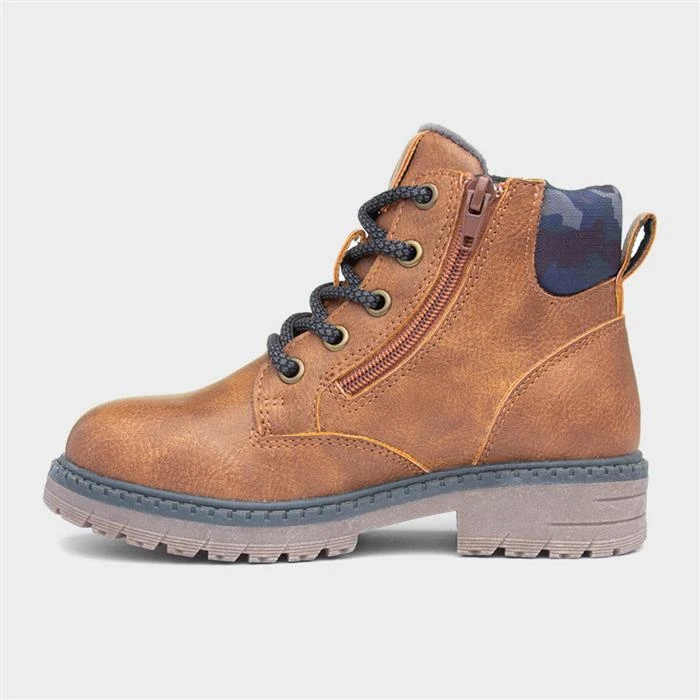 The Larry kids’ boot by Stone Creek Junior features a tan upper with a camo padded collar. They’re easy to fit with a pull tab, lace up fastening and zip up fastening, and a cleated outsole keeps them steady on their feet.