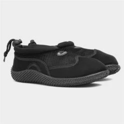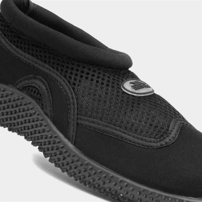 Designed by Trespass, these kid’s Paddle aqua shoes are perfect for swimming in the sea or playing on the beach, thanks to their gripped, lightweight, anti-slip outsole. They feature a black, mesh upper with breathable holes and a slip on design for an easy fit, with a toggle on the back for an extra secure fit.