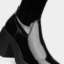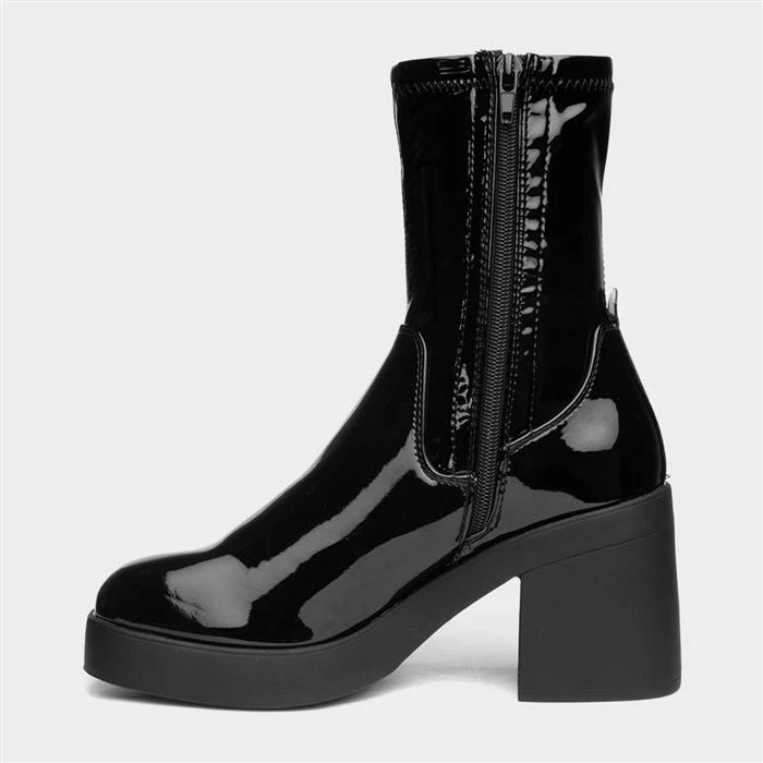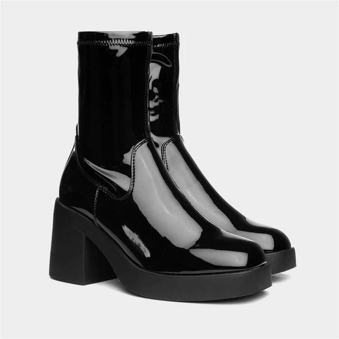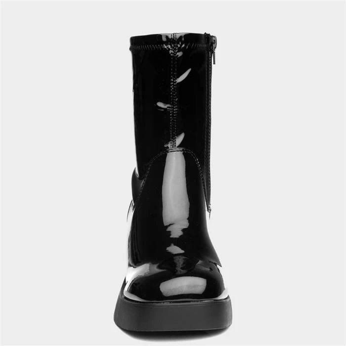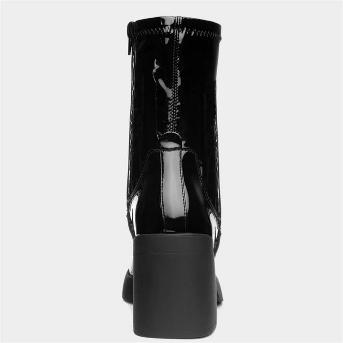 These Cheryl women’s boots from Truffle feature a black patent upper with stitch detailing and a stretch upper for a sock-boot style fit. A zip-up fastening allows a quick and easy fit, while their soft lining offers comfort. This chunky block heel is bang on trend this season and would look great teamed with jeans, skirt or dress.
