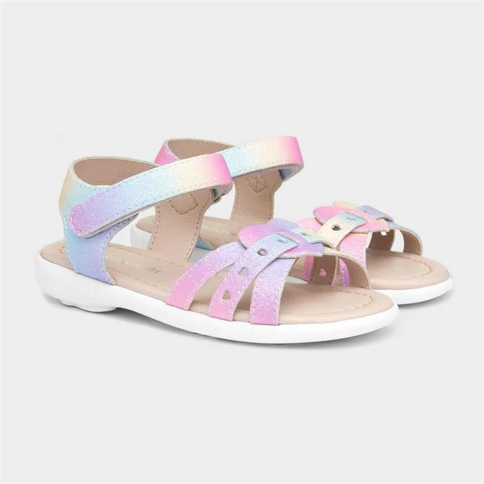 From Walkright, these girls’ sandals feature a rainbow gradient upper with a glitter shimmer and heart detailing across the toe. Their easy fasten strap ensures a secure fit, while their insole offers comfort. Additionally, these sandals feature a low wedge heel and a flat insole for a stable grip!