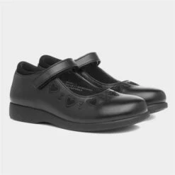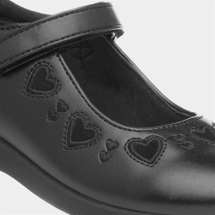 Designed by Walkright, these girls’ school shoes embrace a black upper with heart stitching. They feature an easy fasten bar strap for easy fitting, while their padded insole ensures all day comfort for your little one.