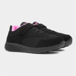 From XL, these girls’ trainers embrace a black upper with pink lining. They feature both elastic laces and an easy fasten strap for quick and easy fitting. while their padded insole and flexible outsole provides comfort underfoot.