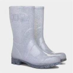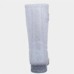 These Frost women’s silver glittery wellington boots are sure to brighten up those dull rainy days. They showcase a navy blue glossy upper along with a quick and easy pull on design, making these ideal for on the go wear this season! Additionally, they provide a thick grip sole which ensures both comfort and support. Perfect for both rainy days and festival wear!